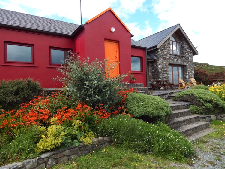 besteht aus dem roten Haupthaus und dem neueren zweigeschossigen Anbau.